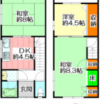 3DKとなります!1階の和室は約8帖!2階の和室もゆったり約8.3帖もあります!温水洗浄機能付きトイレ – 間取り