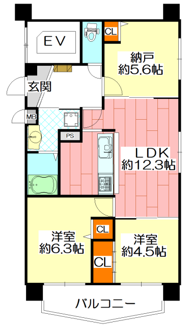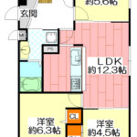 3LDK(洋室 約5.6畳 洋室 約6.3畳 和室 約4.5畳 LDK 約12.3畳 )